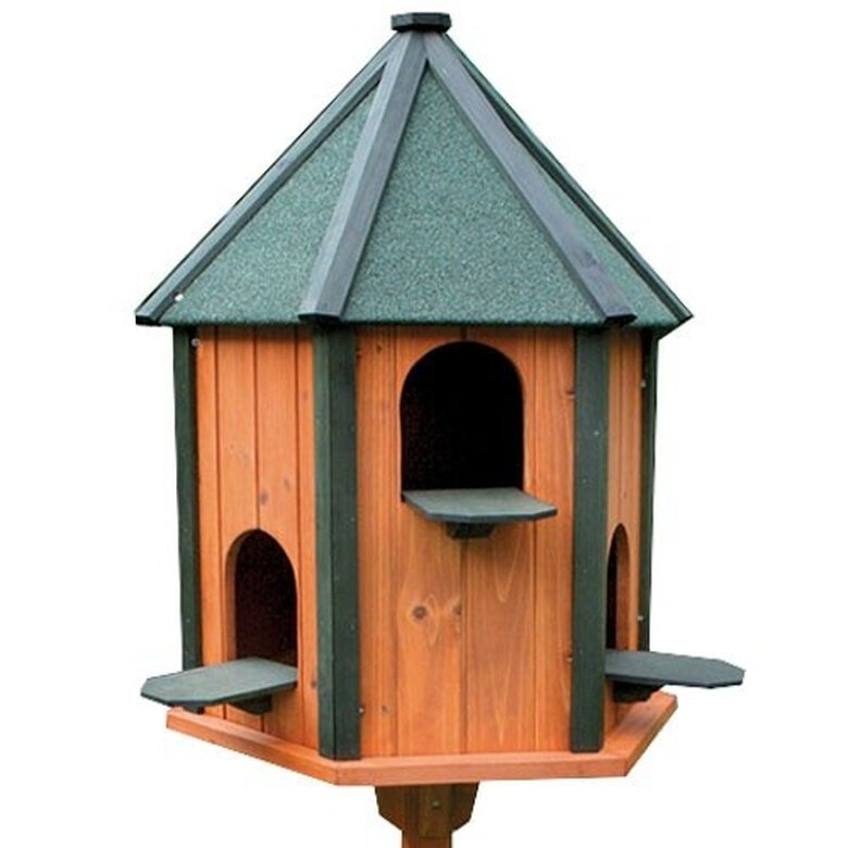 Hermoso palomar que ofrece la mayor comodidad para tus palomas. Las tres cajas nido separadas permiten que las parejas de palomas descansen en paz. Hexagonal, fabricado en madera tratada, el techo …